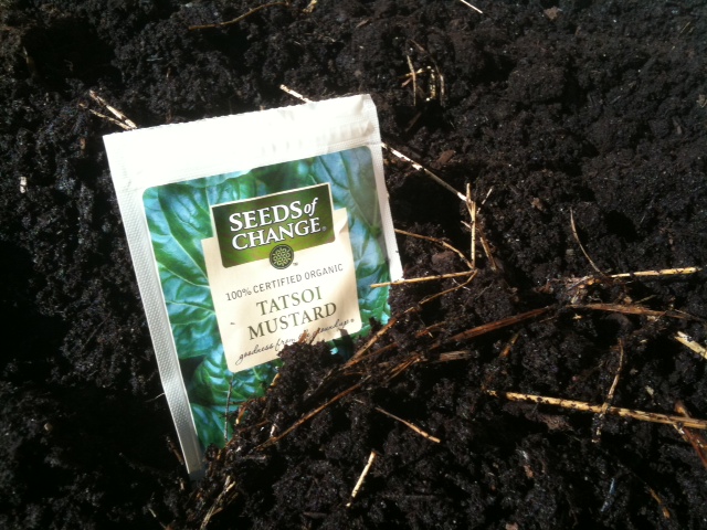Next we waited a few days for the soil to get nice and warm inside. When I opened up the cold frame this past Sunday afternoon, it was steamy and very warm! Time to plant our seeds!