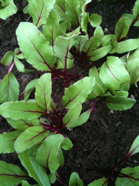 Our cold frame veggies have all sprouted and look pretty good. In the cold frame we have tot soi, kale, beet greens, lettuce, mixed cooking greens, onions, and carrots. Pictured here are the baby beets.